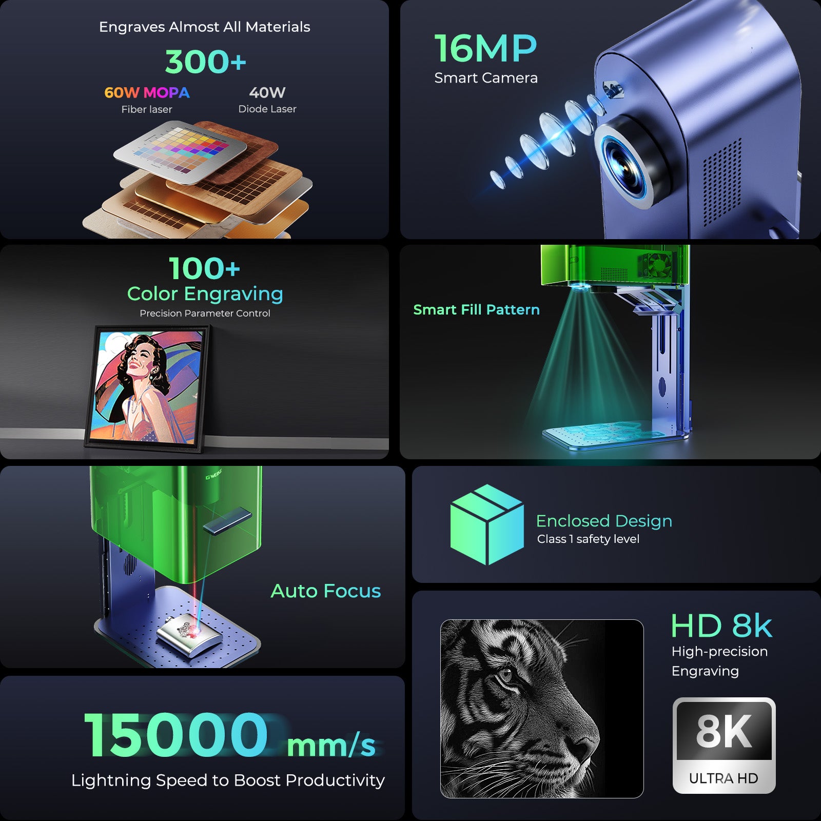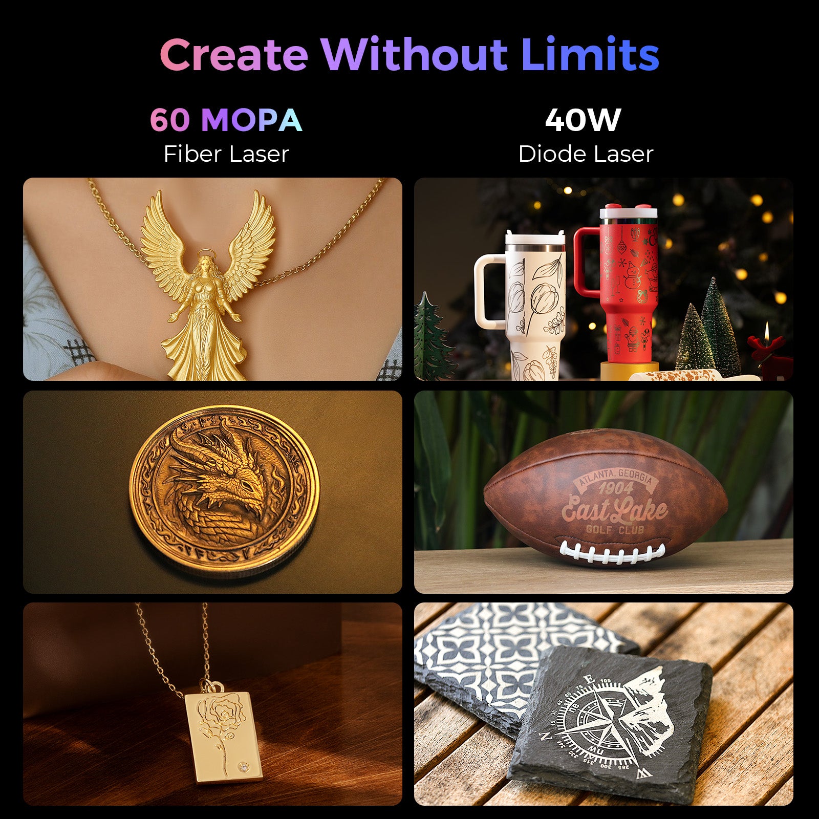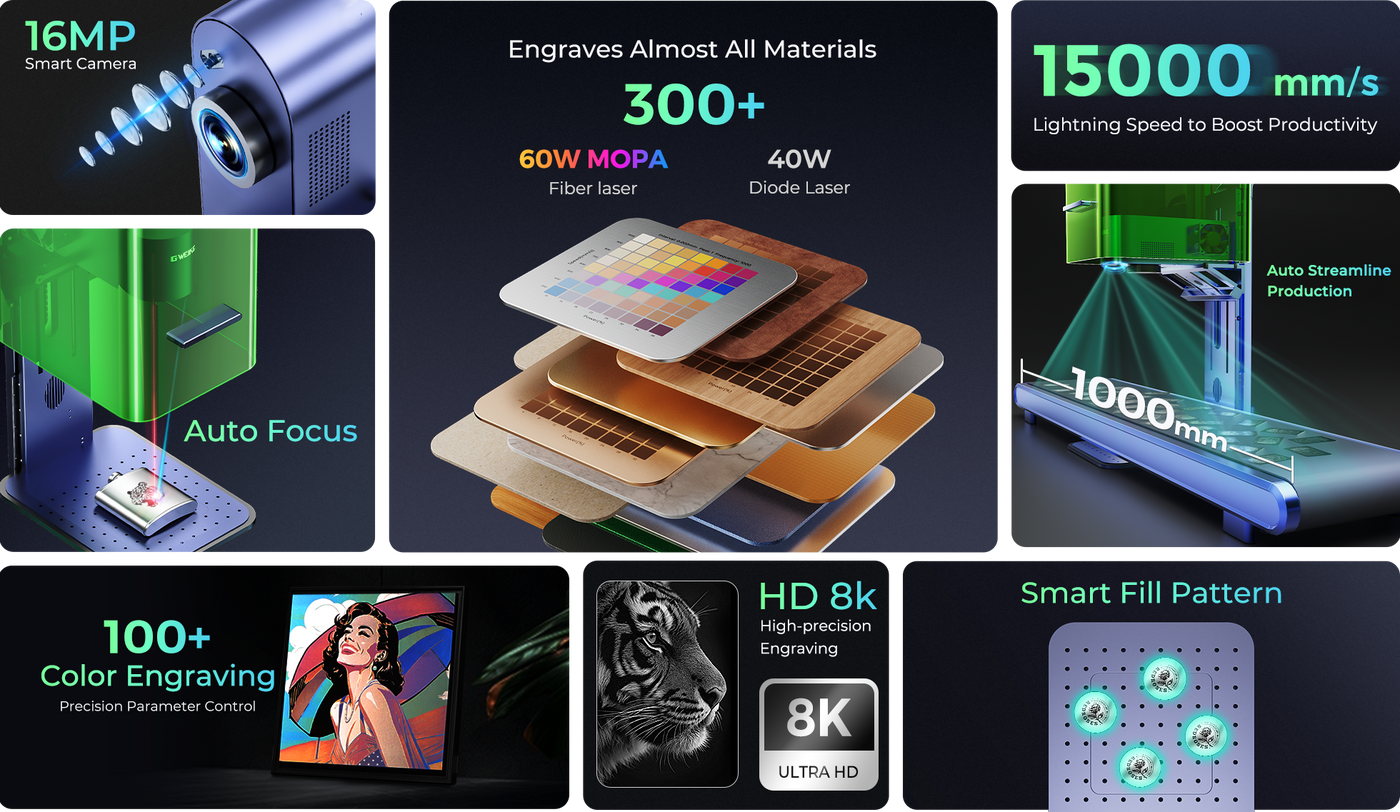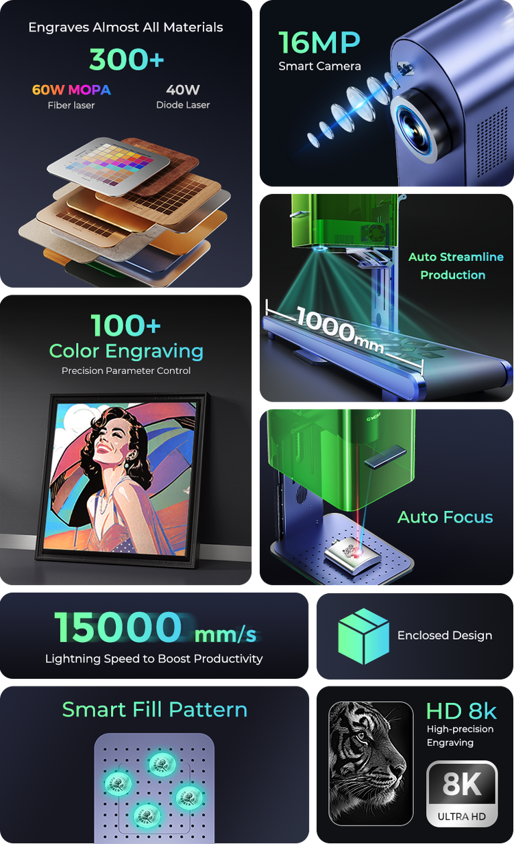World’s 1st 60W MOPA Fiber & 40W Diode Dual Laser Engraver