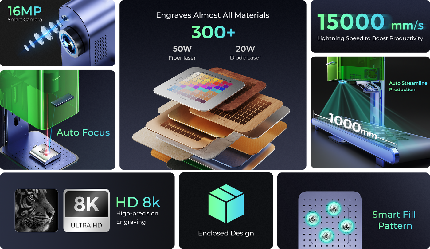 World’s 1st 50W Fiber & 20W Diode Dual Laser Engraver