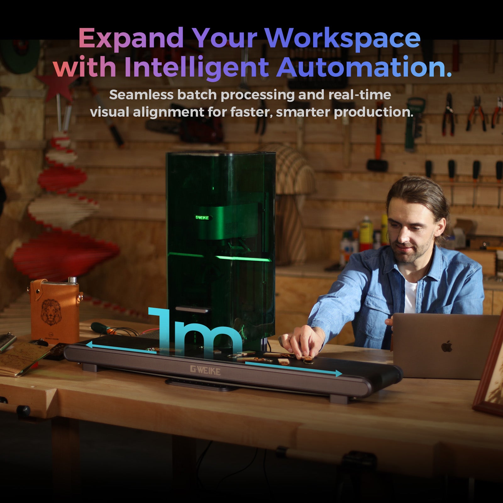 The GWEIKE G3 automated conveyor handles full 1-meter sheets, eliminating splicing gaps and boosting hroughput