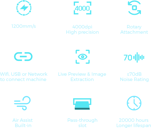 - Small thermal diffusion area, and can engrave/cut very fine works.