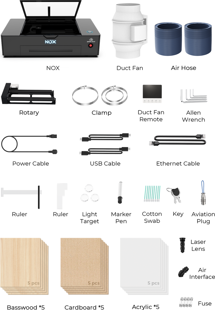 業界標準のレイアウト、編集、制御ソフトウェアである LightBurn を使用すると、追加のソフトウェアを必要とせずにレーザーと直接「対話」できます。