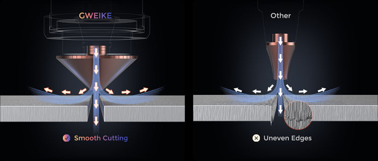 The powerful 1.5MPa gas jet delivers exceptional penetration capability, enabling smooth cutting of thicker materials with a maximum cutting thickness of 6mm. The high-pressure airflow instantly expels molten metal, significantly reducing plate preheating time while increasing carbon steel cutting speed. The enhanced gas stream thoroughly removes slag, achieving outstanding cut surface quality with roughness (Ra) ≤3.2μm for optimized edge finishing.